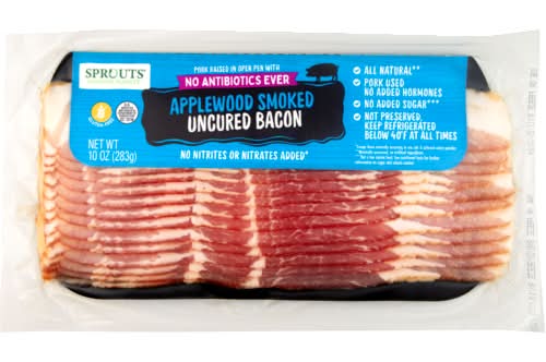 Your Sprouts Farmers Market No Antibiotics Ever Applewood Smoked Uncured Bacon delivery options may vary depending on where you are in a city. Enter your address to browse Sprouts Farmers Market No Antibiotics Ever Applewood Smoked Uncured Bacon delivery options near you.