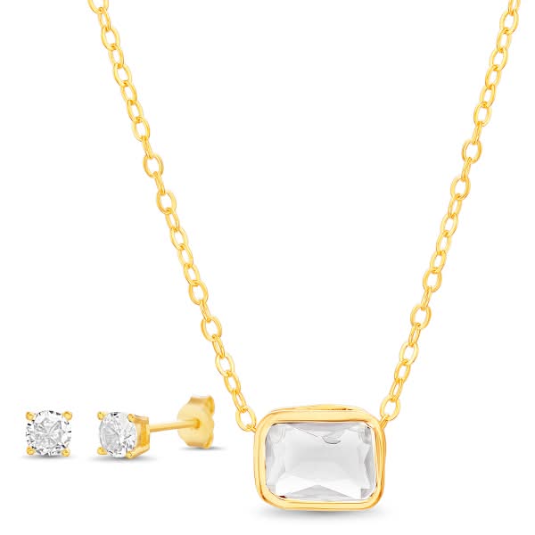 Ophelia Roe Cubic Zirconia Necklace and Stud Earring Set, Gold