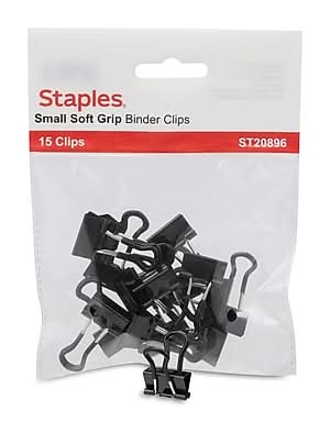 Staples Softgrip Binder Clip, S, Black (15 ct)