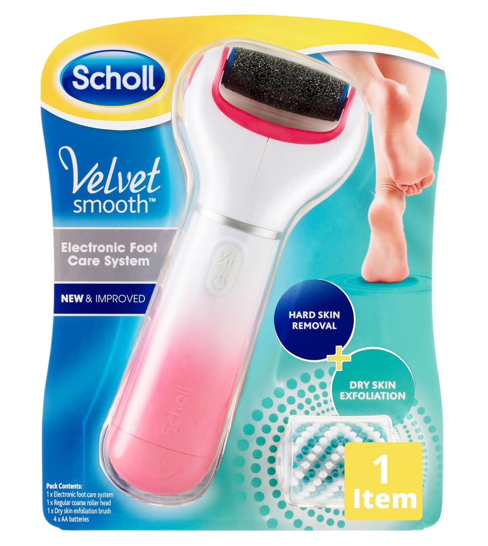 NEW and Improved Scholl Electronic Foot Care System for hard skin removal + dry skin exfoliation, brought to you by Scholl with 100 years of expertise! Around the world 25million owners use our devices to get soft beautiful skin Key Features: - Can be used for Wet & Dry Skin - New design for better handling - Dual speed to adapt to your needs - Includes 2 refill heads: - Extra Coarse Refill: to remove hard skin on the feet - Exfoliating Refill: to gently exfoliate dry, flaky skin on your feet and lower legs Quicker and better results!* *compared to manual methods