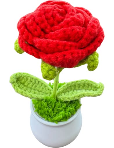 Crochet Flower With Small Pot, Red-Green