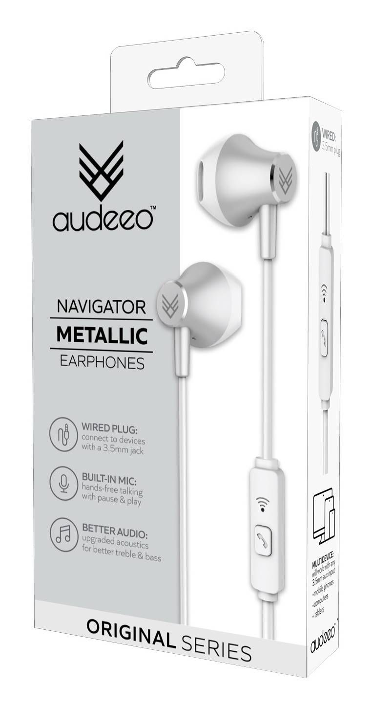 Audeeo Navigator Original Metallic Wired Earphones, White