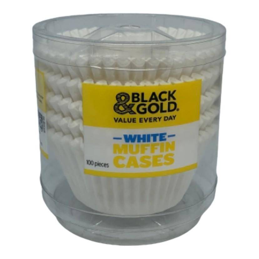 Black & Gold White Muffin Cases (250g, 100 pack)
