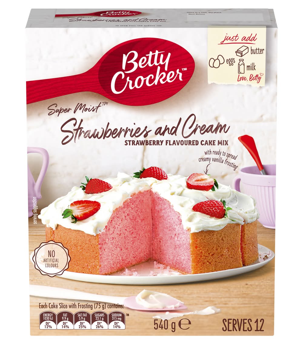 Betty Crocker Triple Super Moist Strawberries and Cream Strawberry Flavoured Cake Mix (540g)
