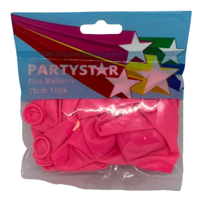 Korbond Partystar Balloons, 25 cm, Pink (18 pack)