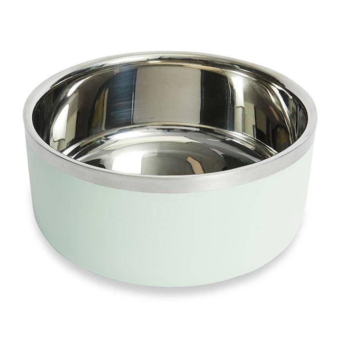 All Day Stainless Steel Double Wall Pet Bowl For Dogs, M, Light Green