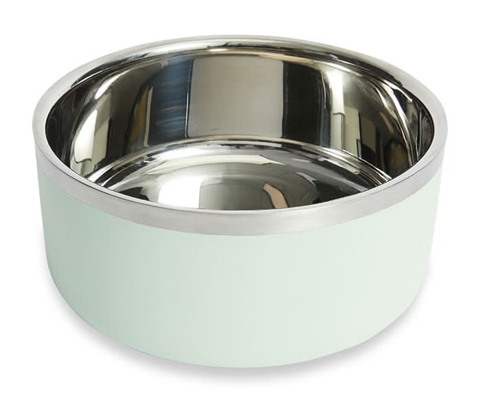 All Day Stainless Steel Double Wall Pet Bowl, L, Light Green