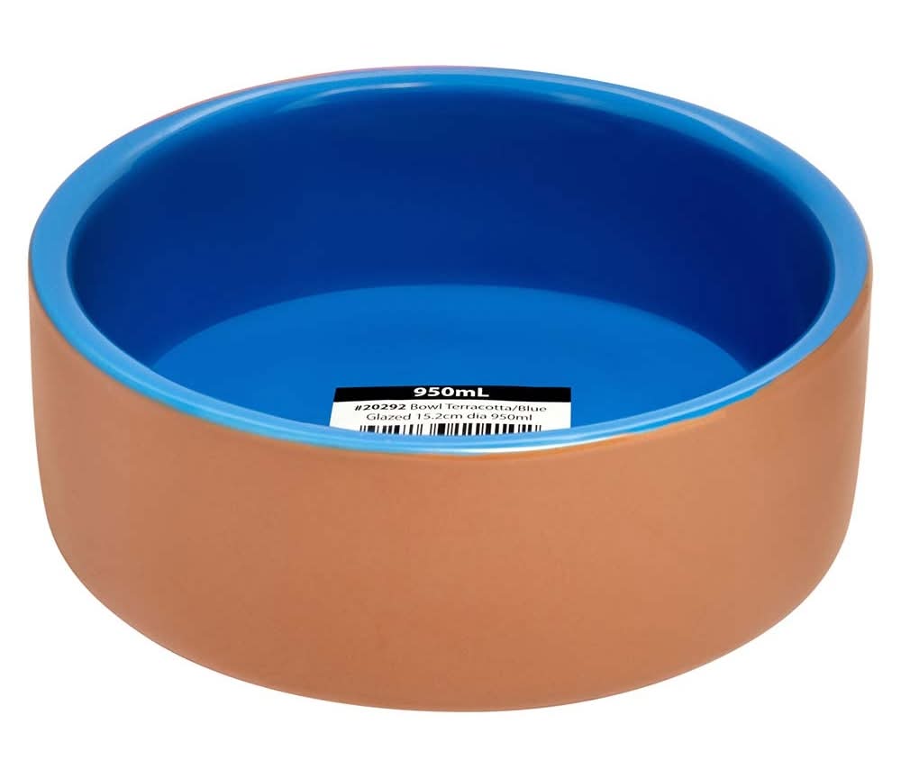 Pet One Terracotta Small Pet Bowl 950 ml, 15.2 Cm, Blue