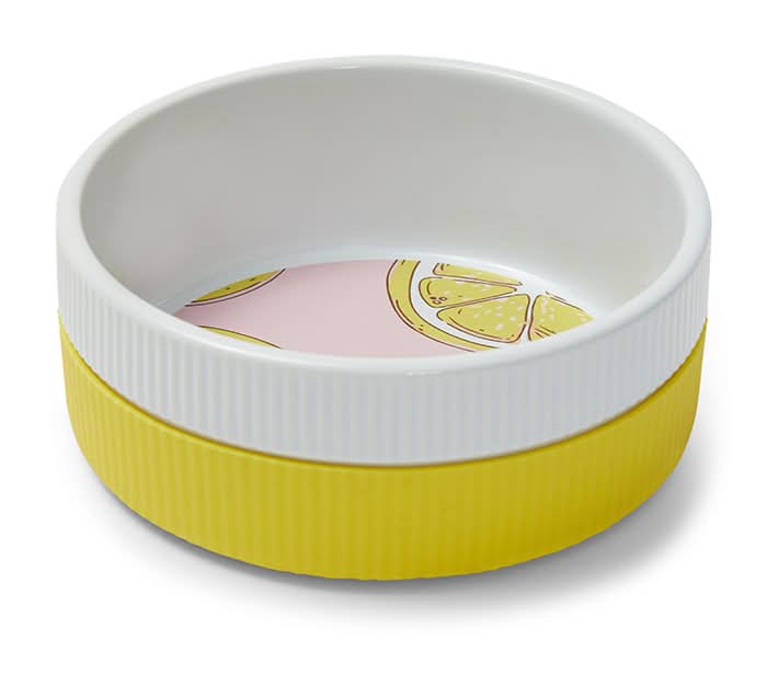 All Day Lemons Ceramic & Silicone Dog Bowl 780 ml, Medium