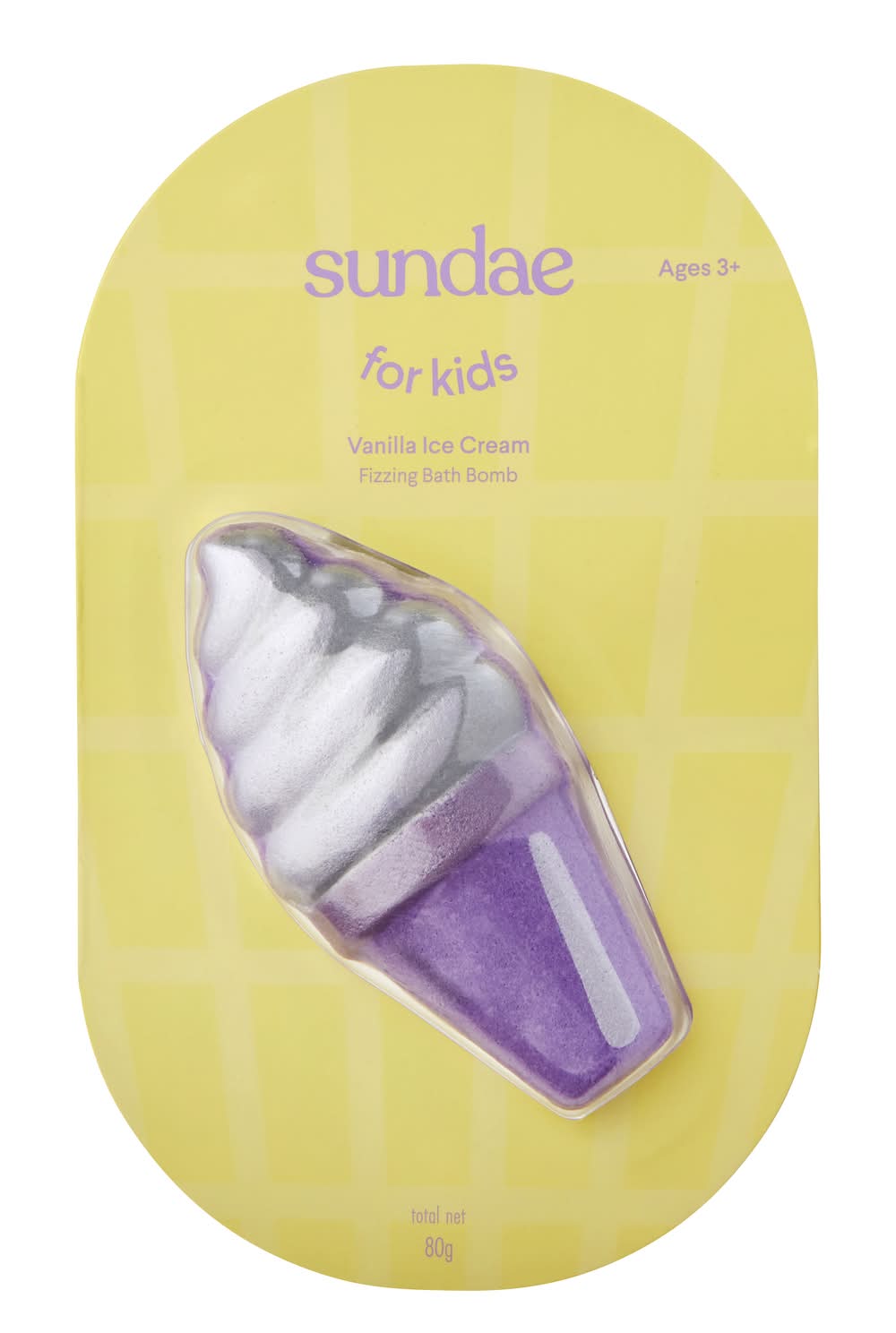 Sundae Fizzing Bath Bomb For Kids Ages 3+, Vanilla Ice Cream (80g)