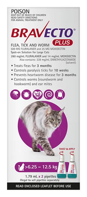 Bravecto Plus Cat Flea Tick & Worm Pipette (3.58mL, 2 pack)