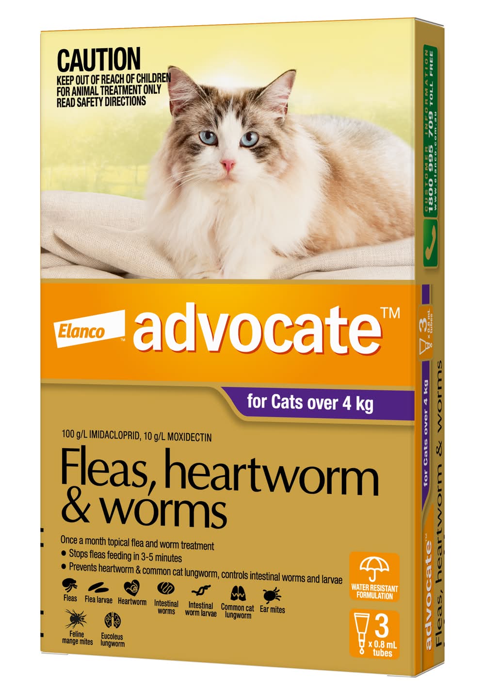 Advocate Fleas, Heartworm & Worms For Cats Over (4kg)