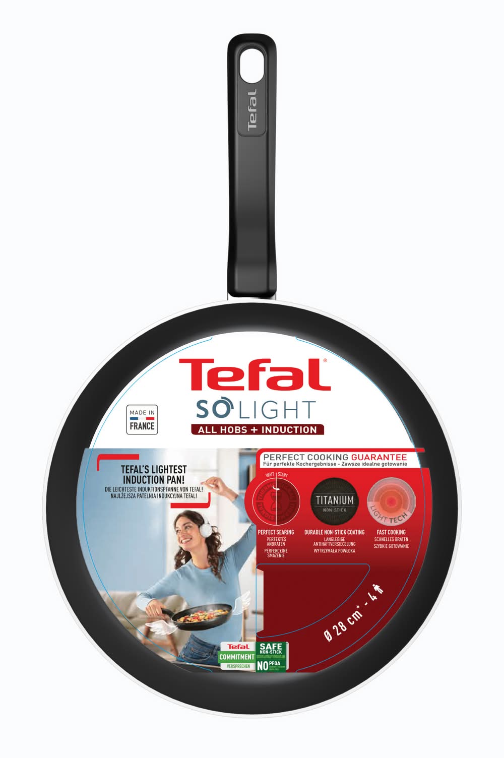 Tefal So Light All Hobs + Induction Non Stick Fry Pan, 28 cm, Black