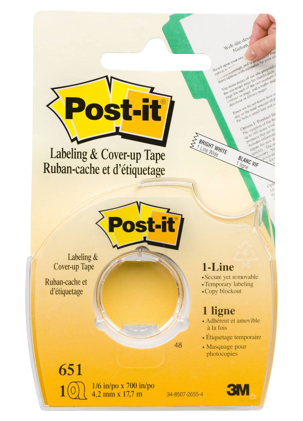 Post-It Labeling & Cover-Up Tape, 4.2mm x 17.7m, Bright White