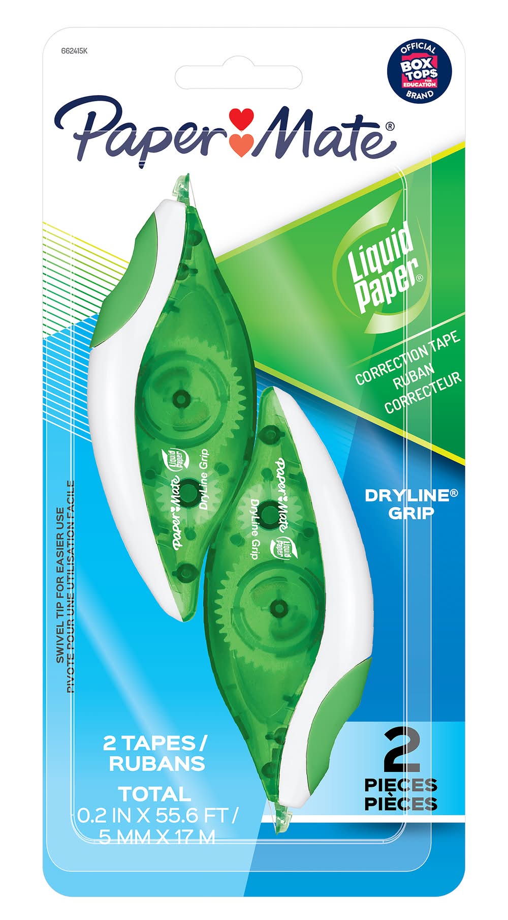 Paper Mate Liquid Paper Dryline Grip Correction Tape (2 pack)