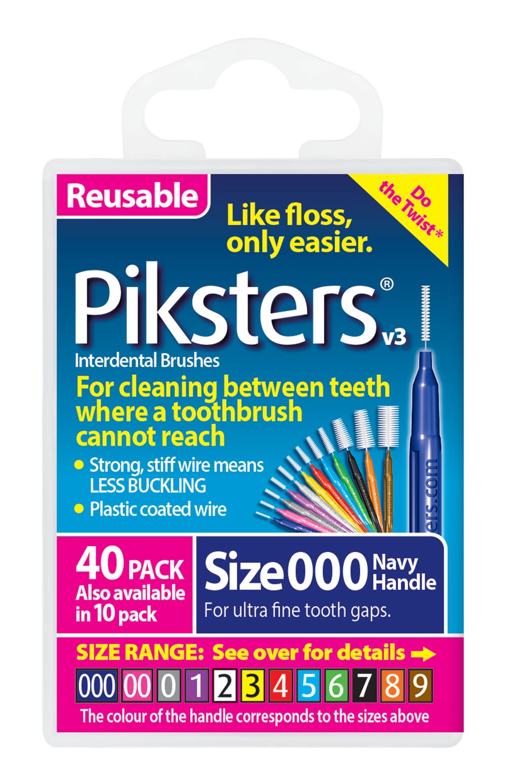 Piksters Interdental Brushes Navy Size 000, Navy (40 pack)