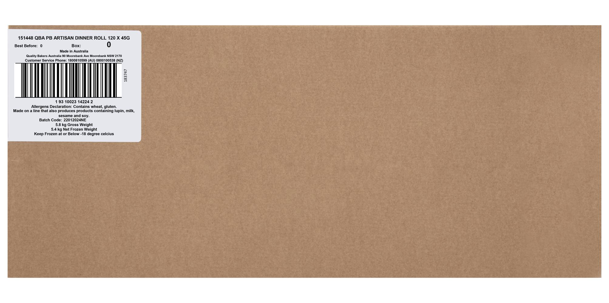 QBA Artisan Dinner Rolls (120 x 45g)