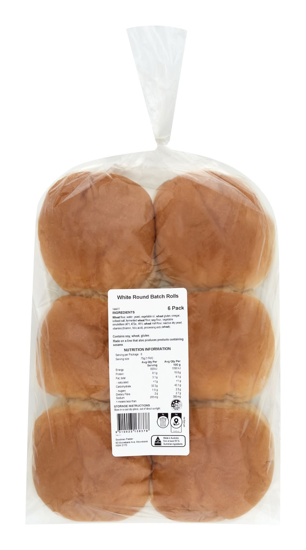 White Round Batch Rolls (450g, 6 pack)