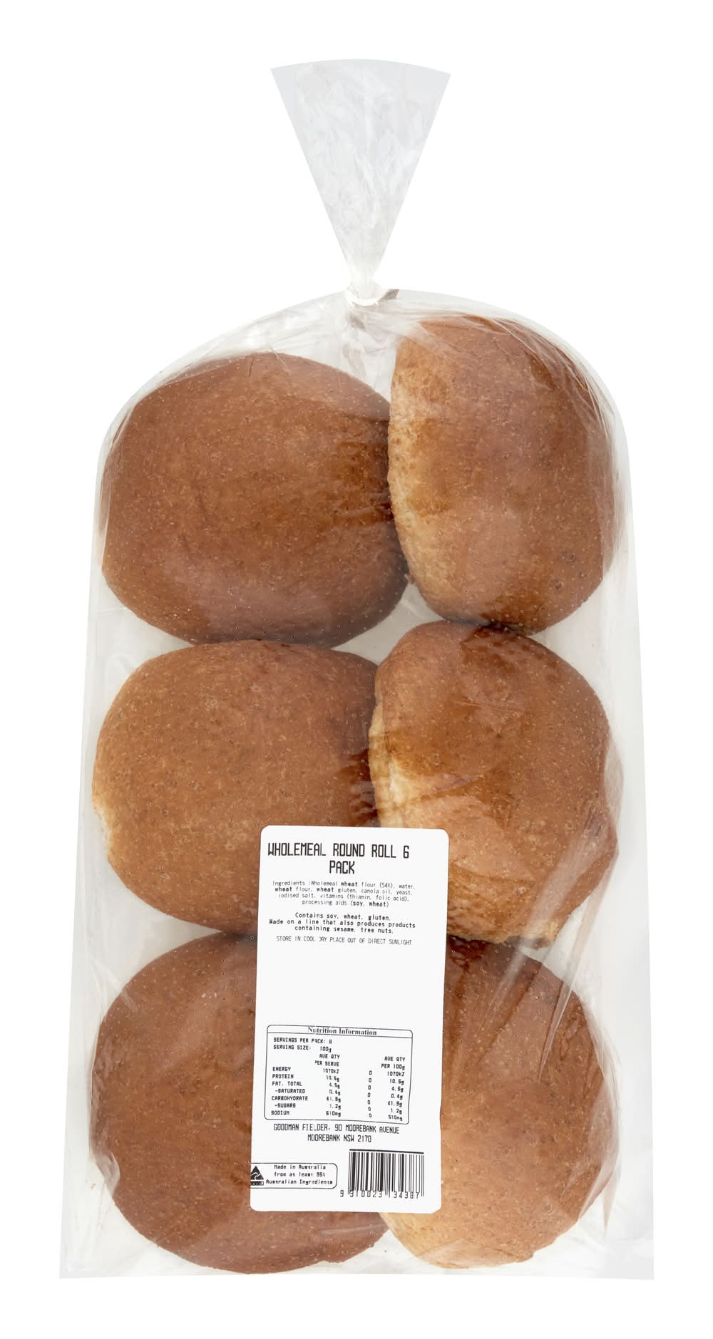 Wholemeal Round Roll (450g, 6 pack)