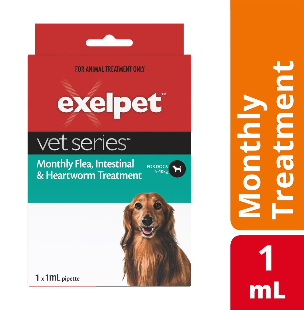 Exelpet Vet Series Monthly Flea, Intestinal & Heartworm Treatment For Dogs 4- (10kg)