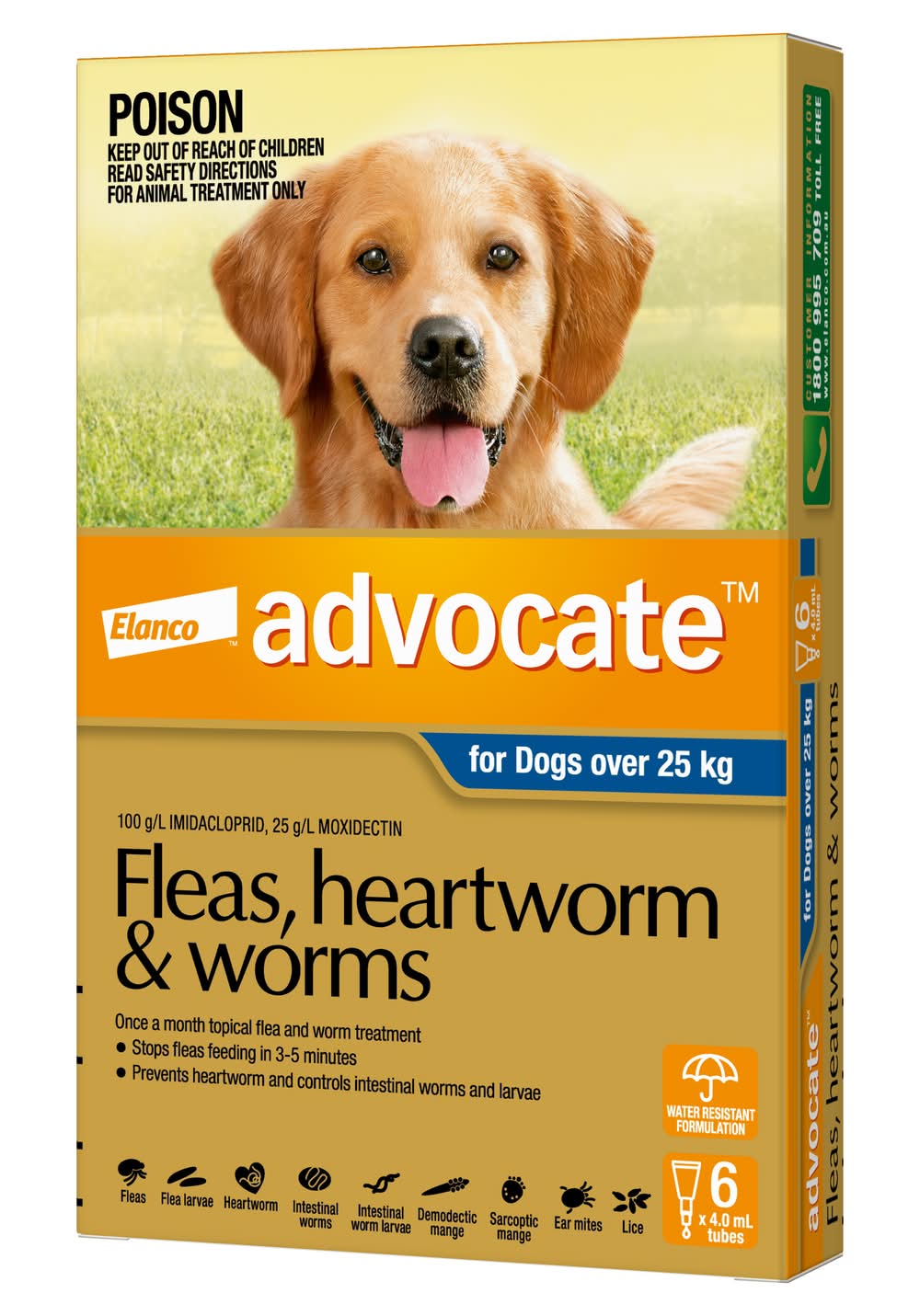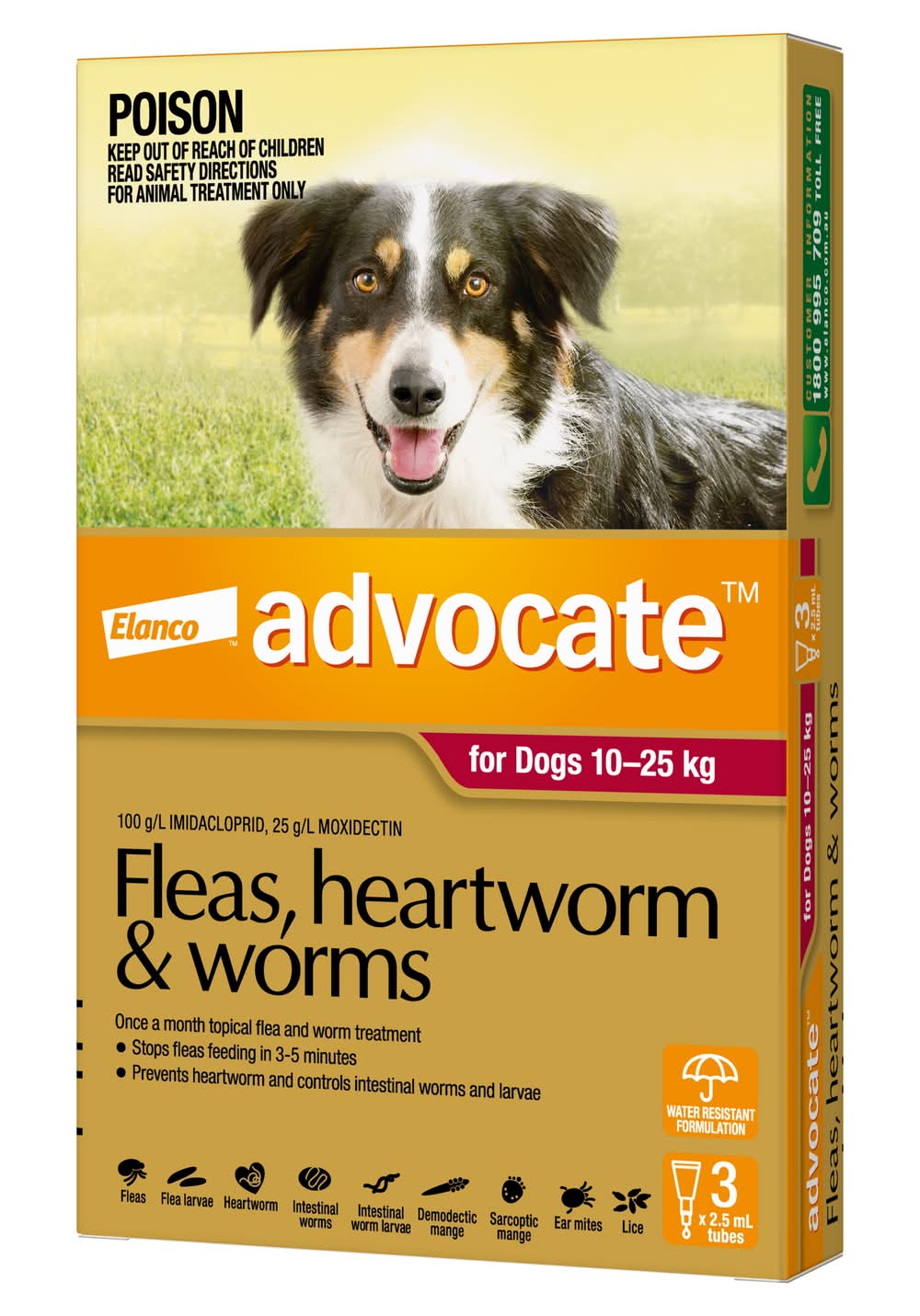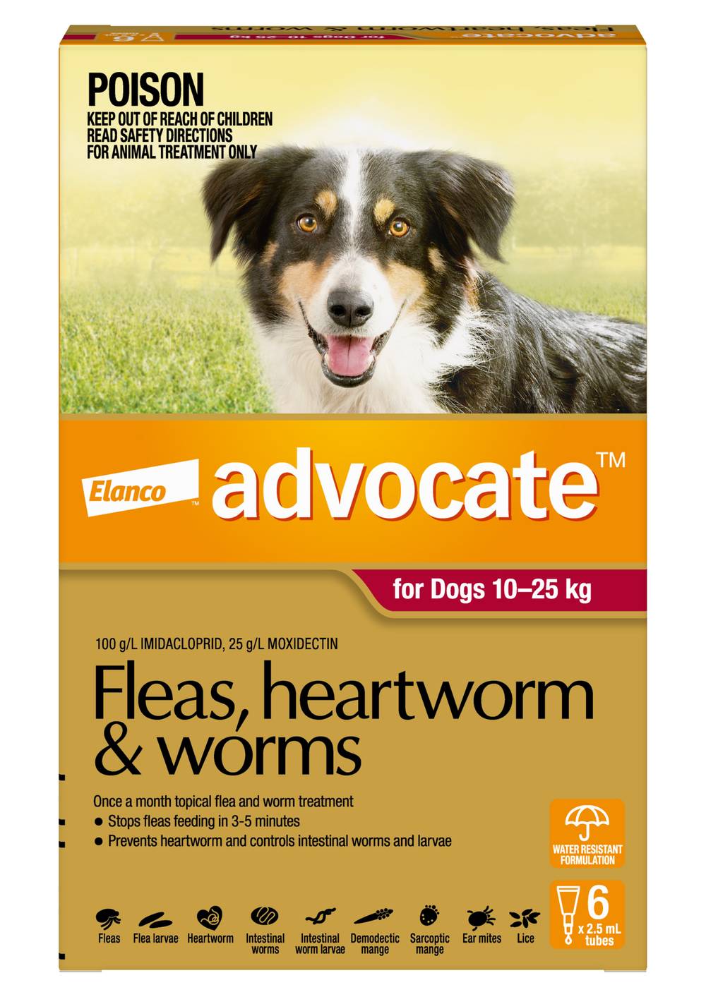 Advocate Fleas Heartworm & Worms For Dogs 10-25kg (6 x 2.5mL)