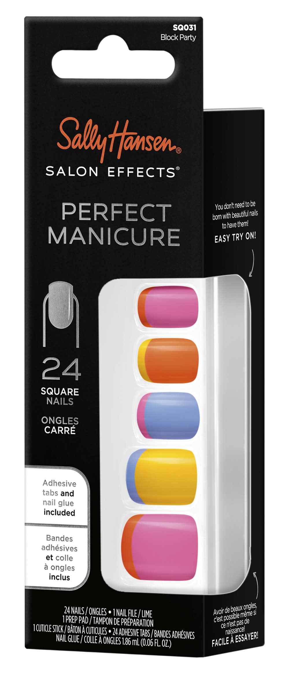 Sally Hansen Artificial Nail Perfect Manicure Square Block Party (1.86mL, 24 pack)
