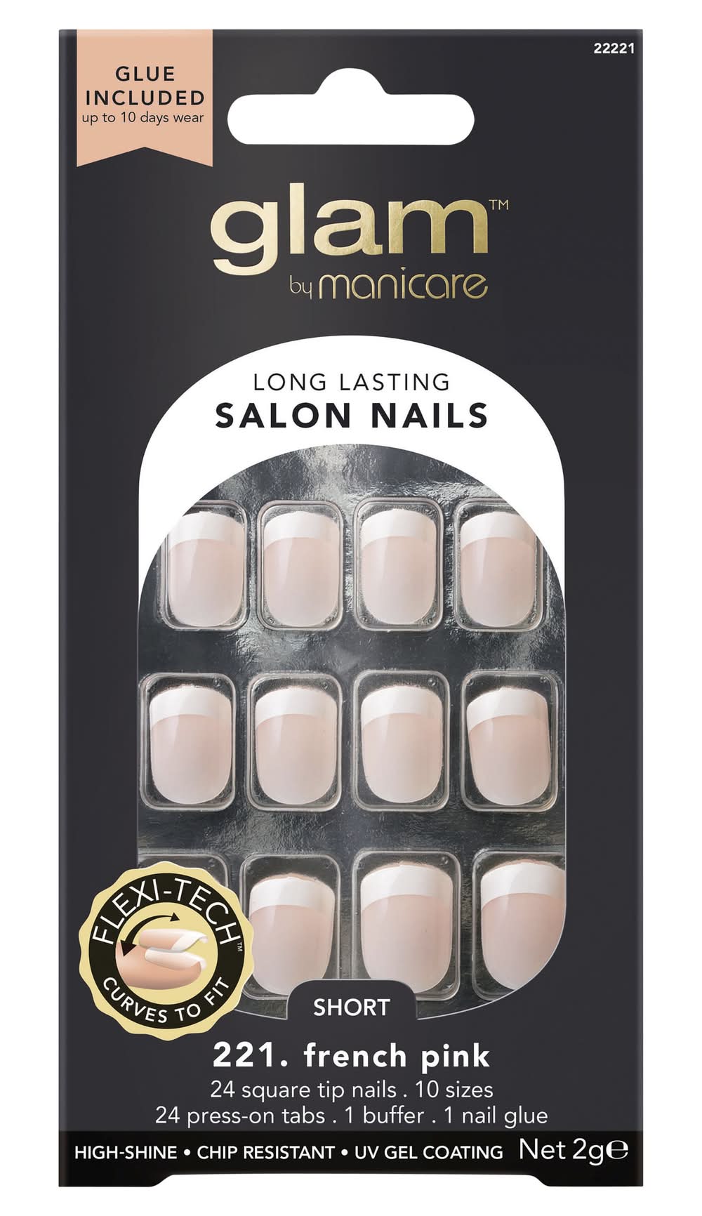 Glam by Manicare Glam Ready Pre-Glued Nails, La Petite French (30 pack)