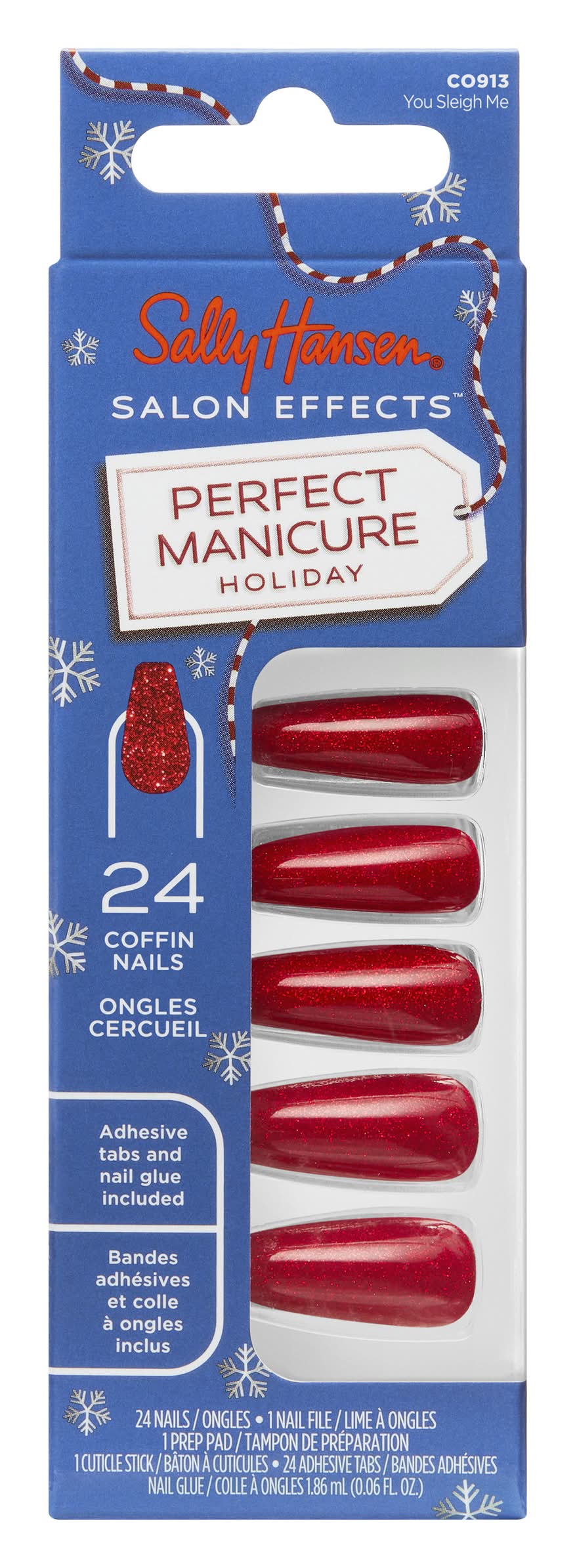 Sally Hansen Salon Effects Perfect Manicure Coffin Press on Nails, Women, You Sleigh Me Co913 (52 pack)