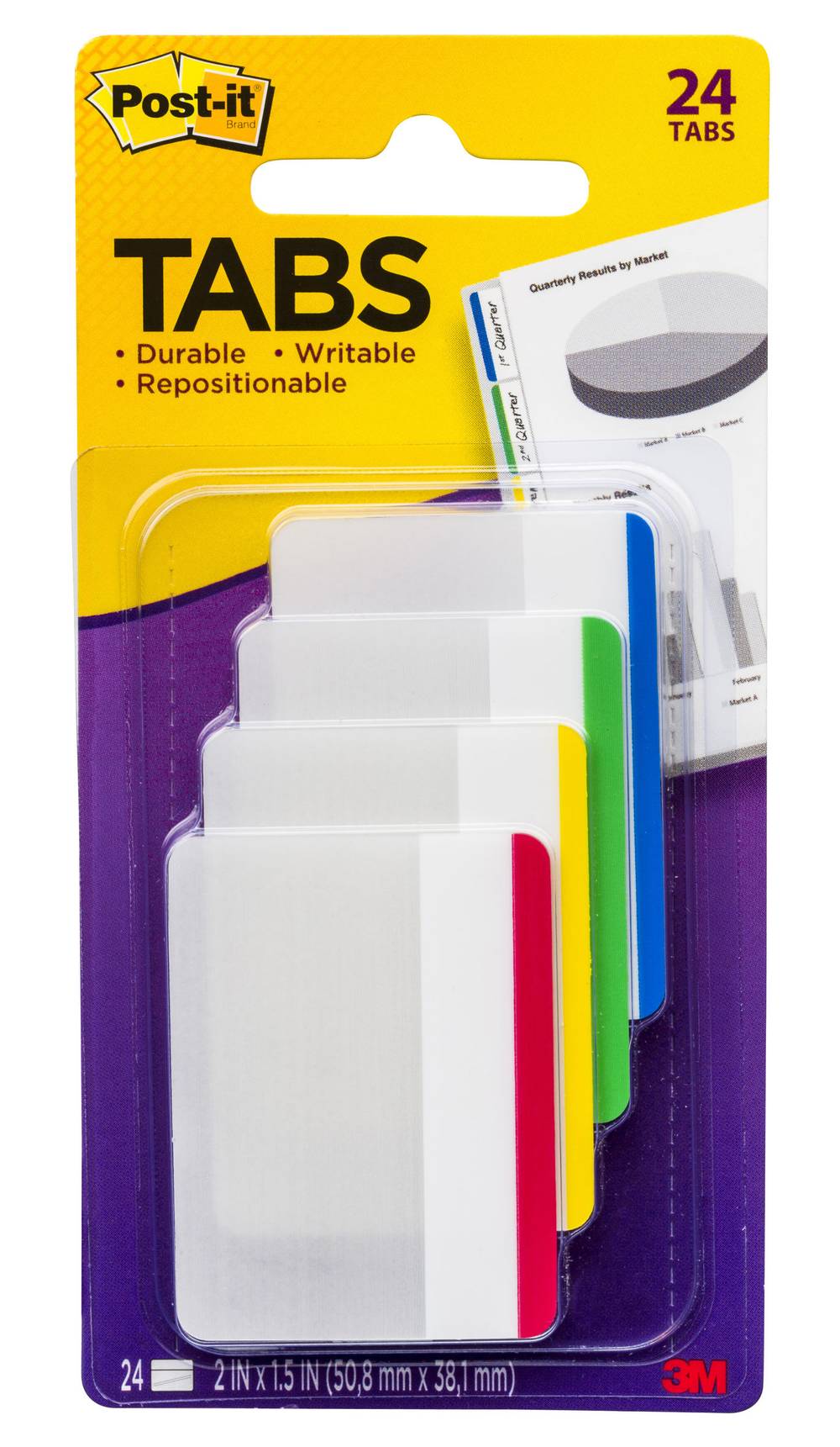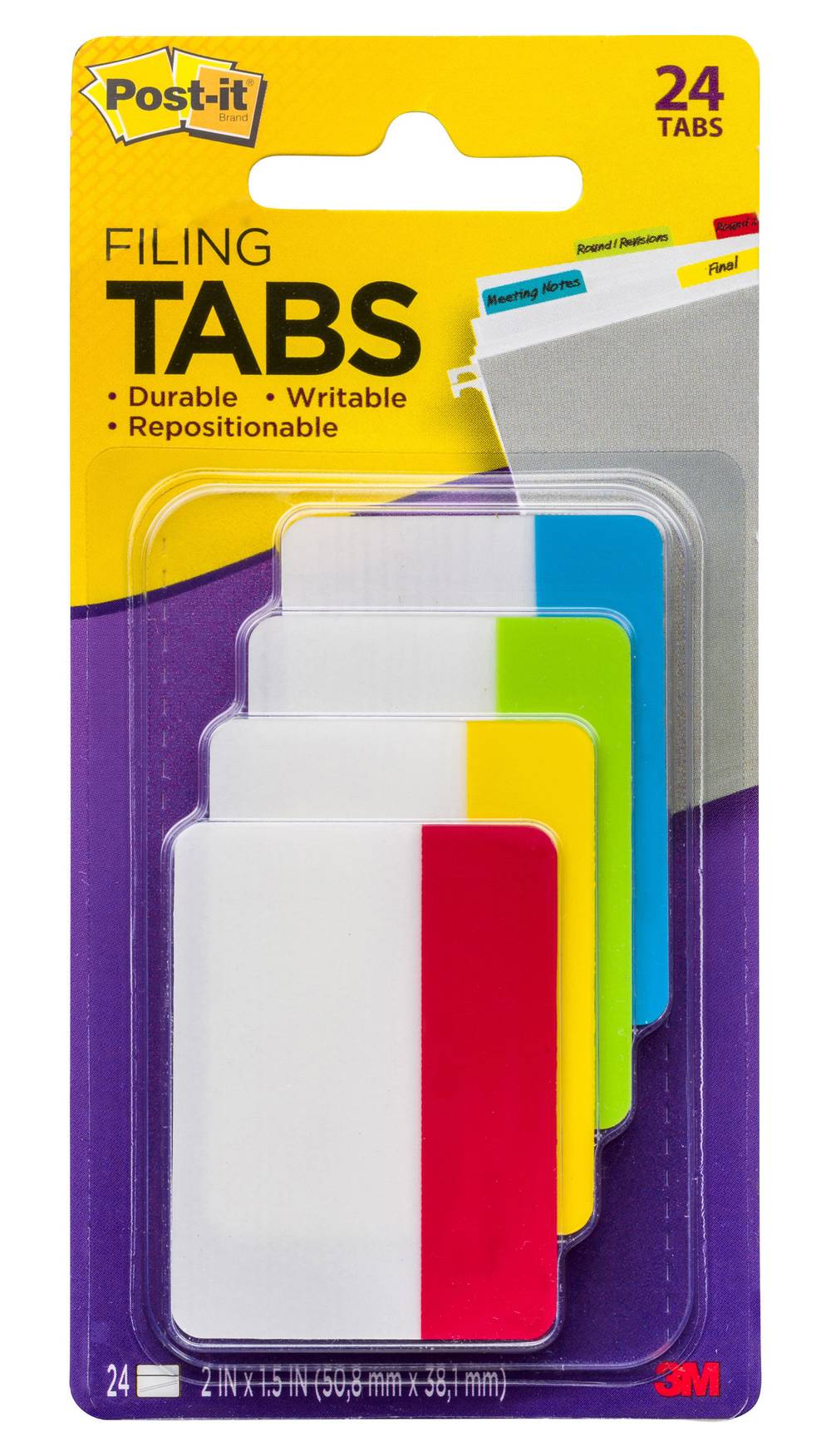Post-It Durable Filing Tabs pack, 2x1.5 in, Assorted (24 pack)