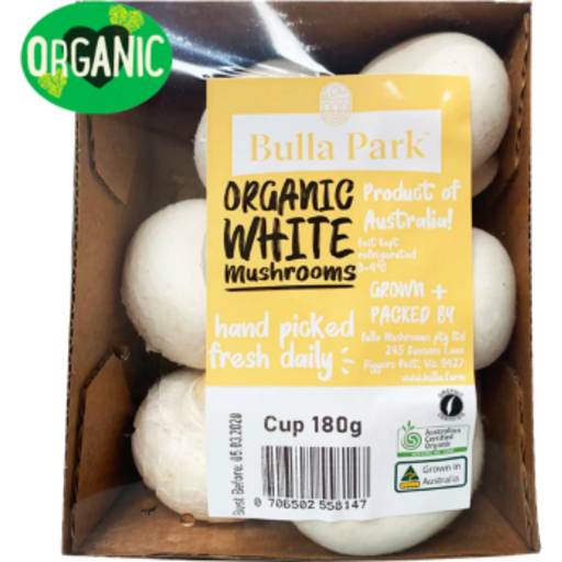 Bulla Park Organic White Mushrooms Punnet (180g)
