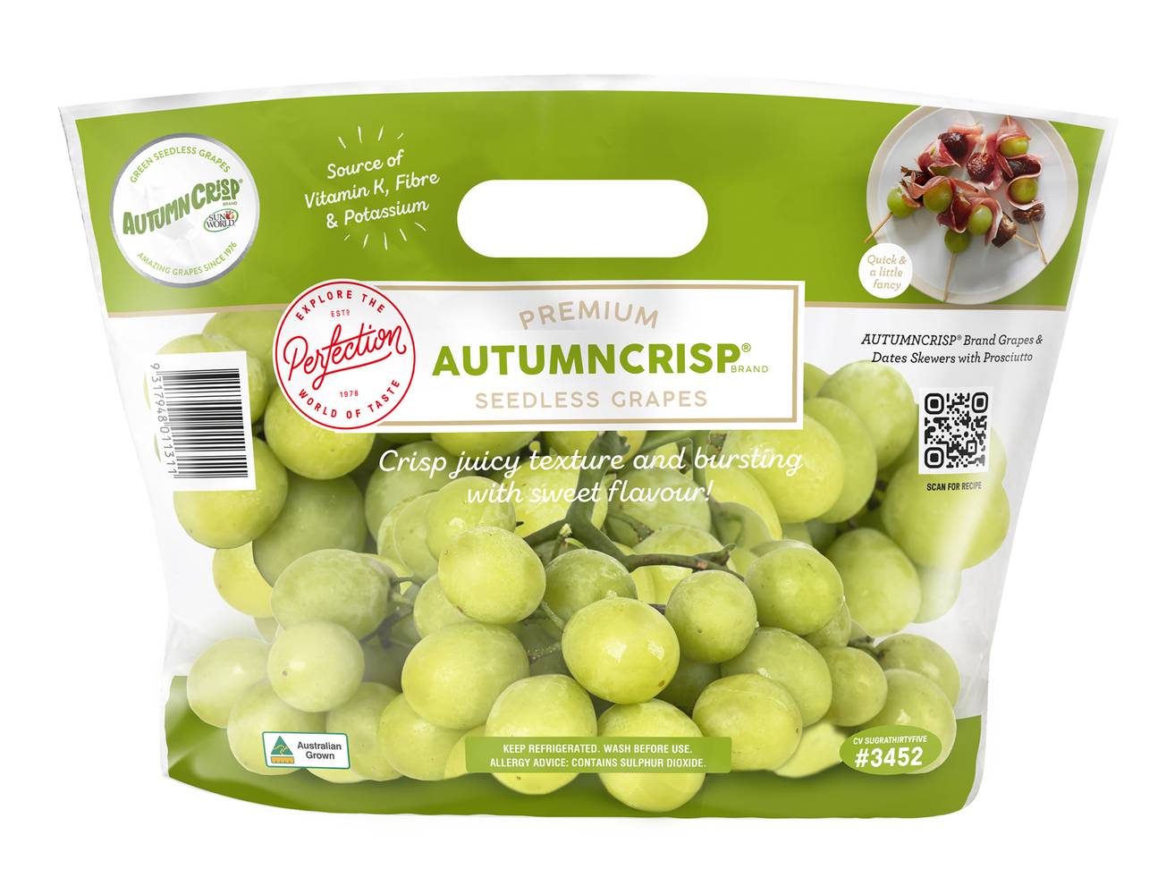 Perfection Fresh Autumncrisp Green Seedless Grapes (450g)