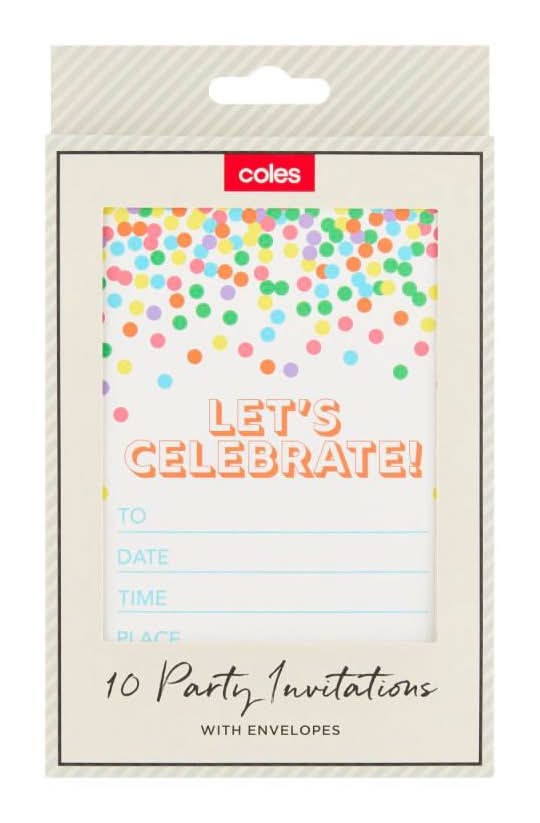 Coles Party Invitations With Envelopes (10 pack)