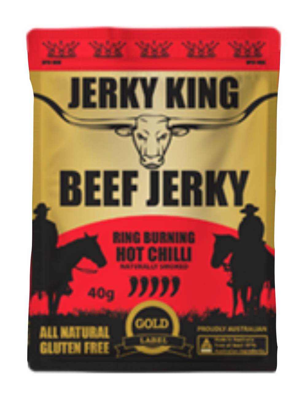 Jerky King Ring Burning Hot Chilli Bag, Beef Jerky (40g)
