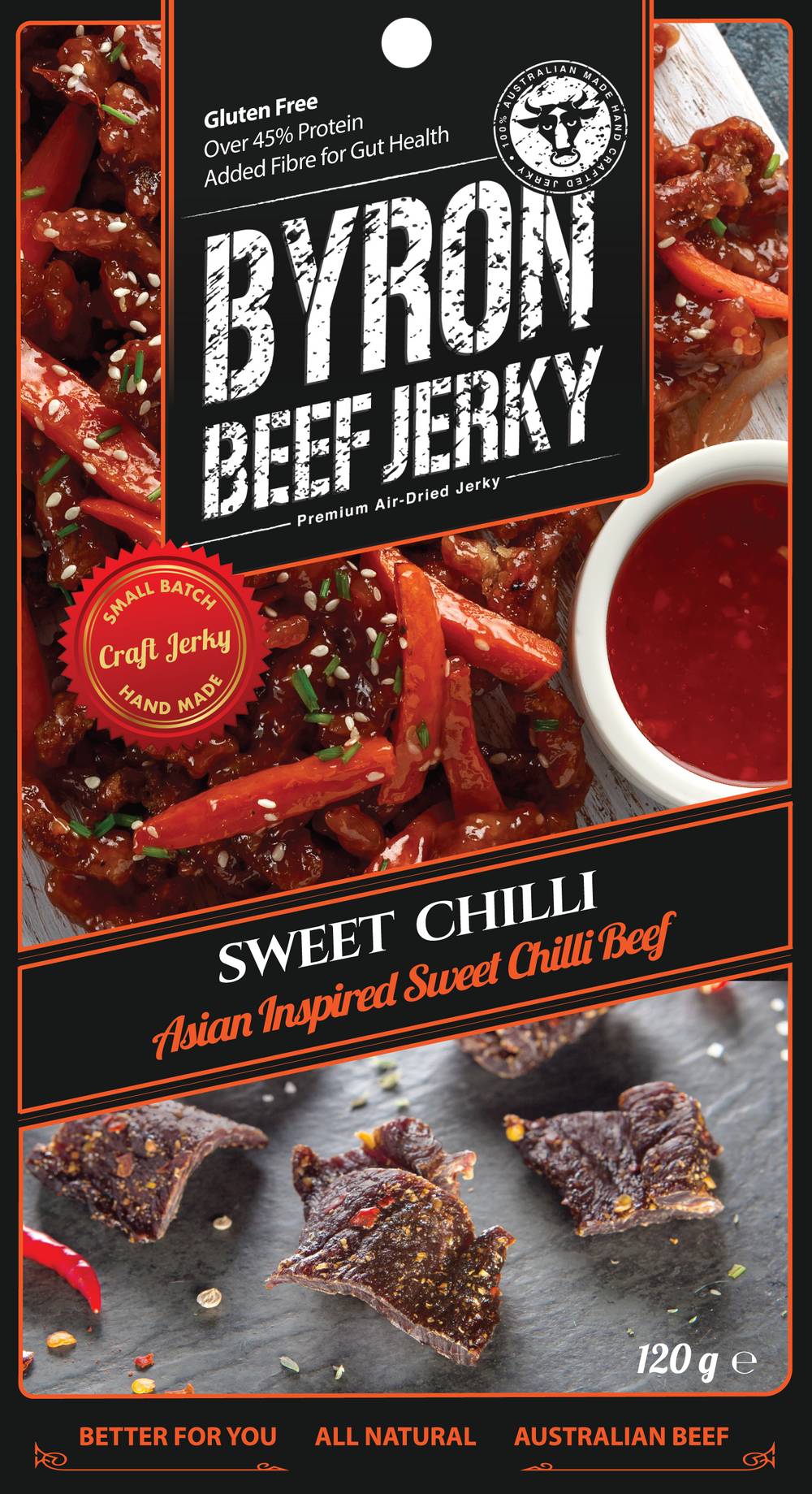 Byron Beef Jerky Premium Air Dried All Natural Australian Beef Jerky, Sweet Chilli (120g)