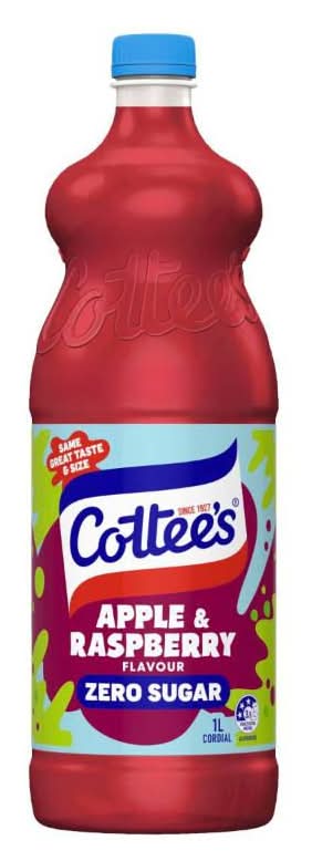 Cottee's Zero Sugar Cordial, Apple & Raspberry (1L)