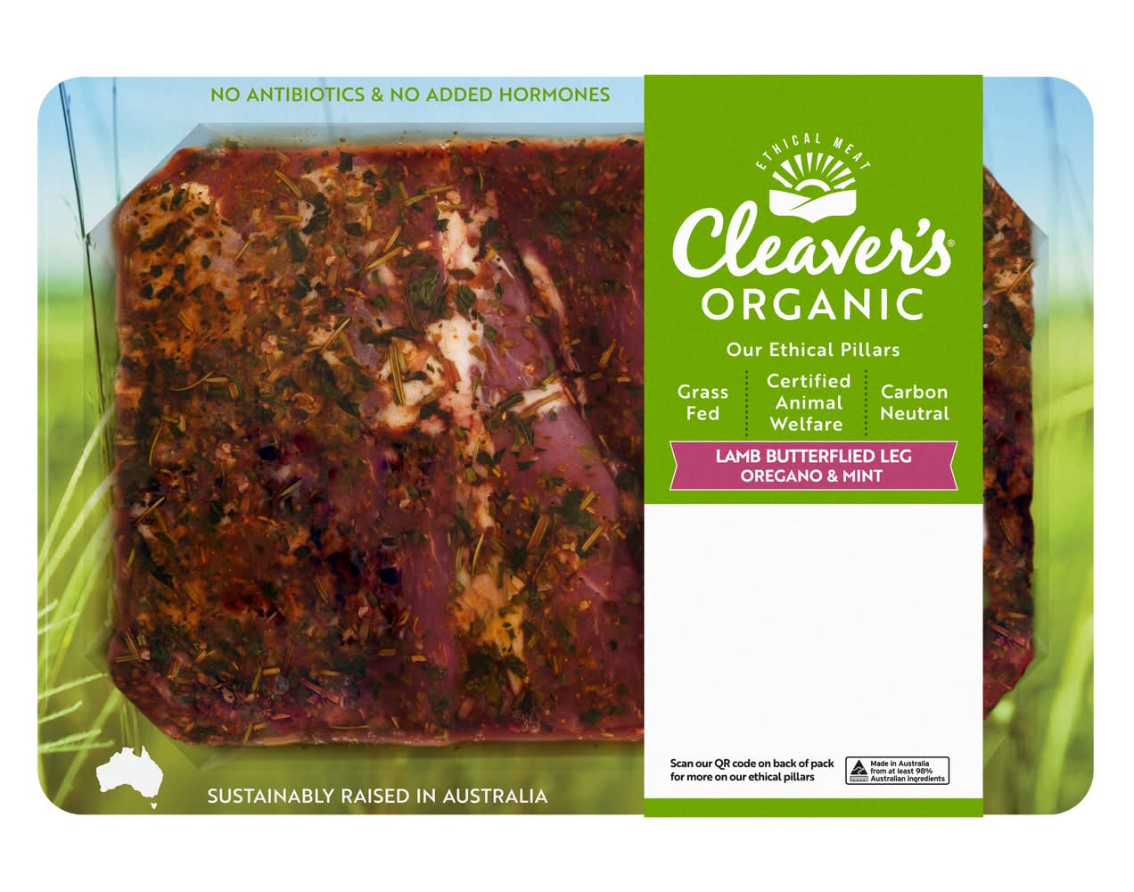 Cleaver's Organic & Grass Fed Lamb Mint & Oregano Butterflied Leg (500g)
