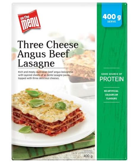 On The Menu Three Cheese Angus Beef Lasagne (400g)