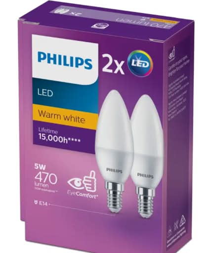 Philips 5W & 470 Lumen Candle Led Lights, Warm White (2 pack)