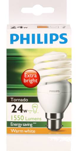 Philips Extra Bright Tornado B22 20w Compact Fluorescent Light Bulb, Warm White