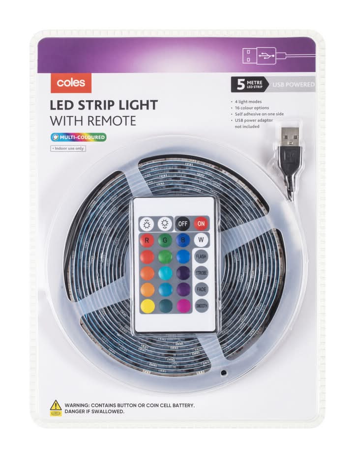 Coles Led Strip Light With Remote, 5 m