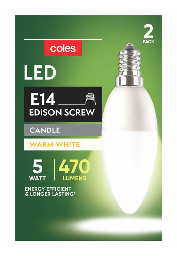 Coles Light Globes 5w 470 Lumens Led Candle (2 pack)