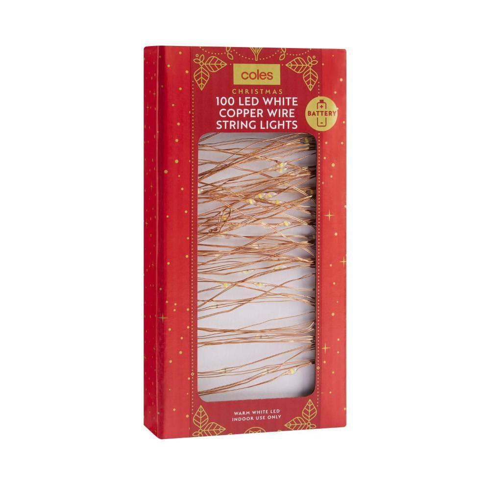 Coles Christmas 100 Led White Copper Wire String Lights Set