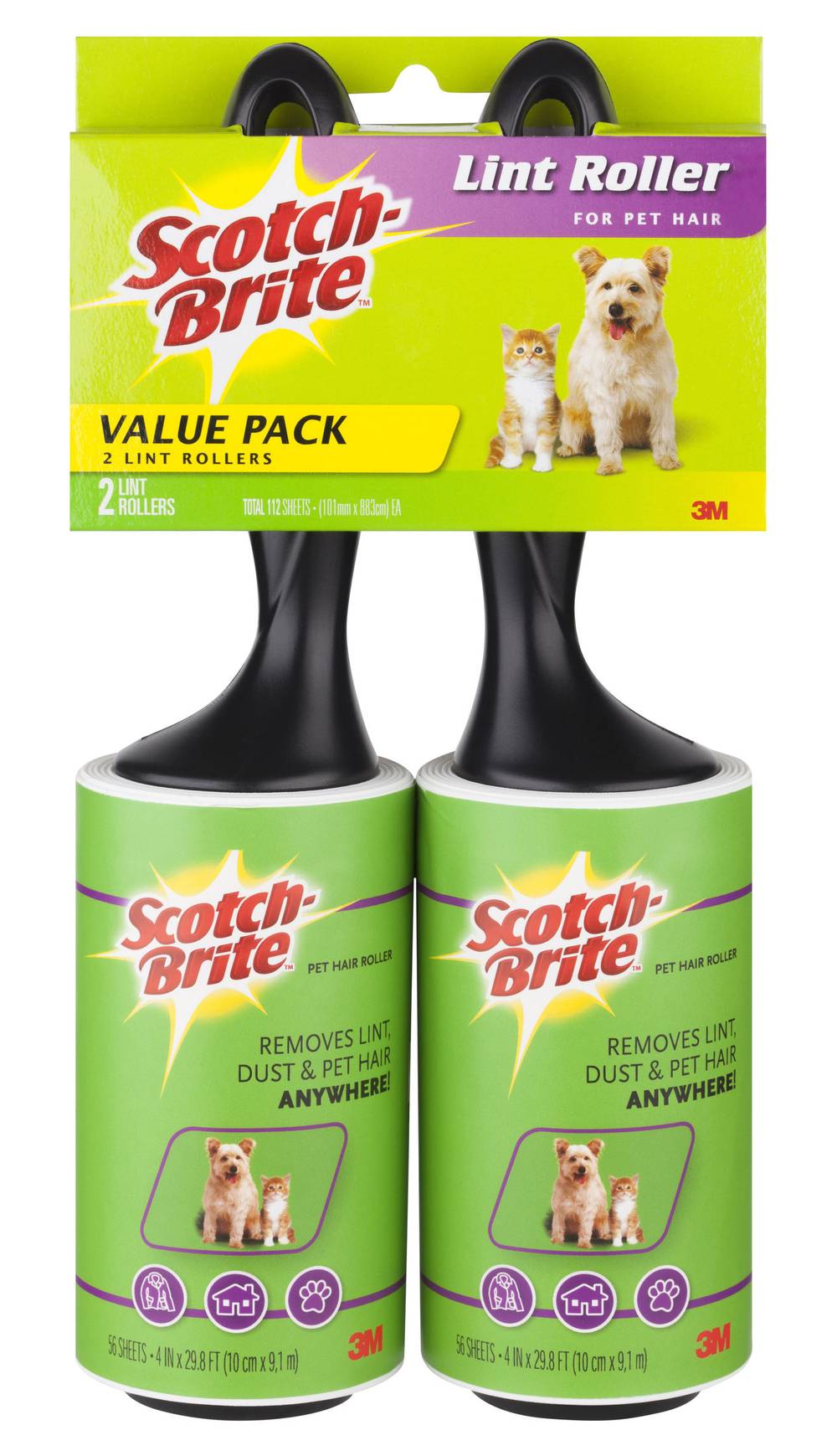 Scotch-Brite Pet Lint Roller Value pack, 4in x 29.8ft, Black (2 pack)