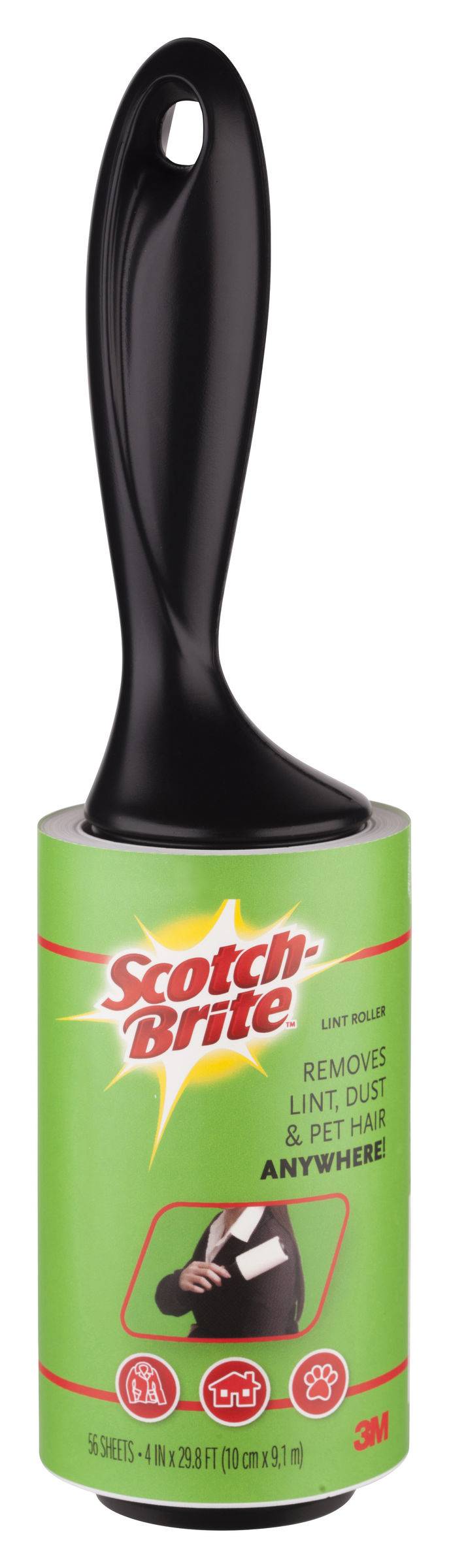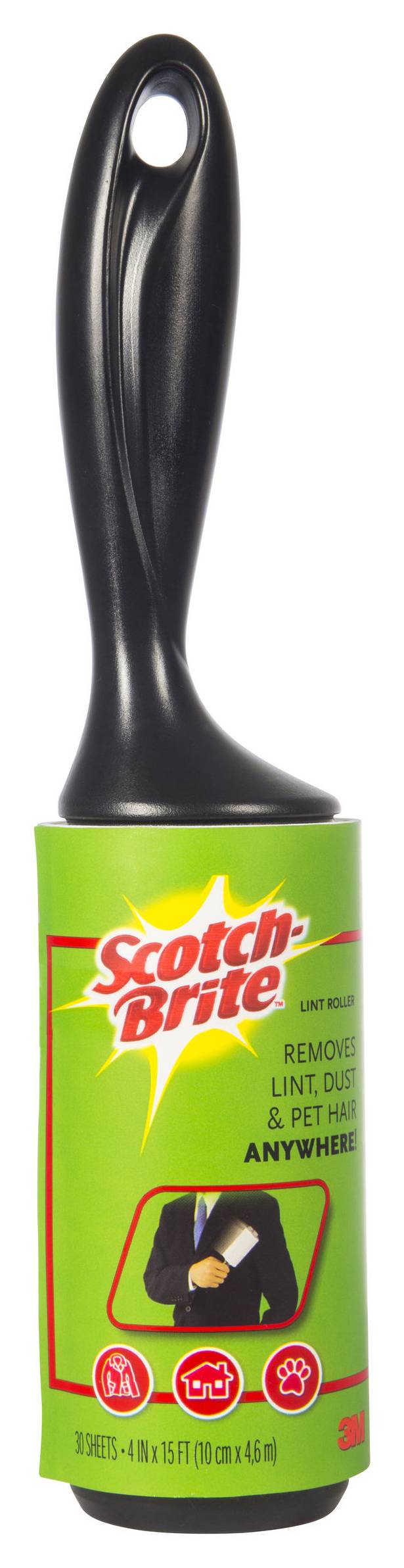 Scotch-Brite Lint Roller, 4in x 15 ft, Black
