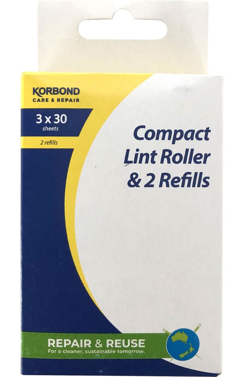 Korbond Compact Lint Roller 2x Refill Each (3 x 30 pack)
