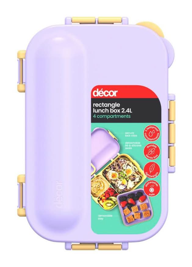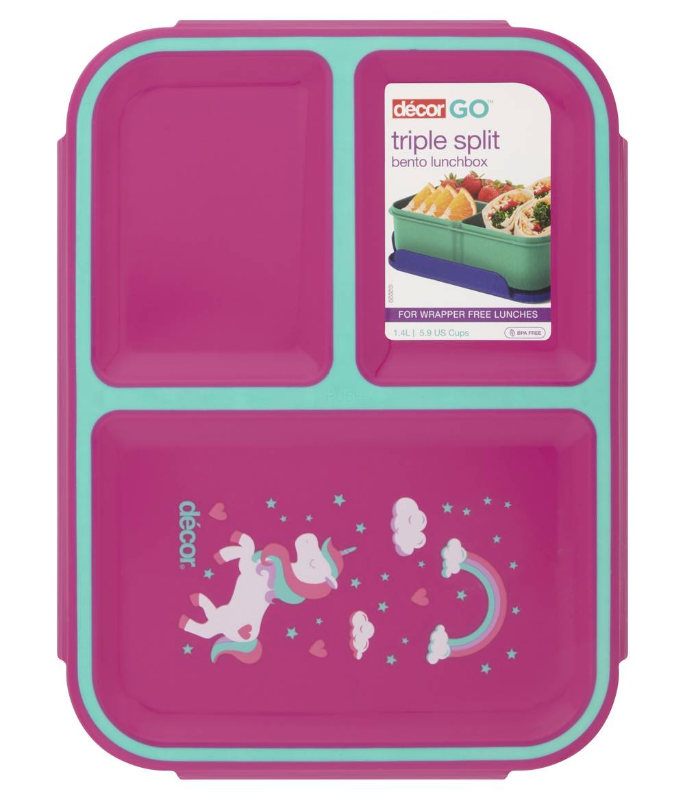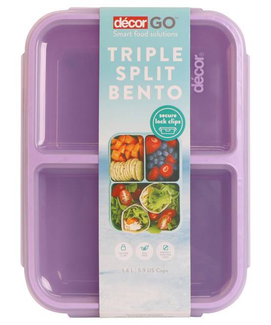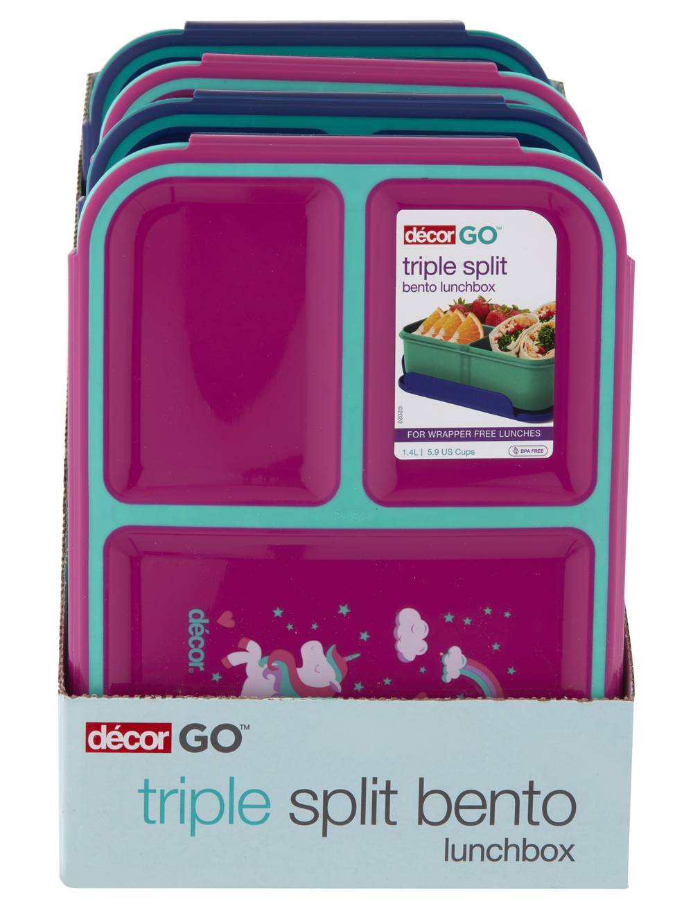 Décor Go Triple Split Bento Lunch Box 1.4 L, Purple