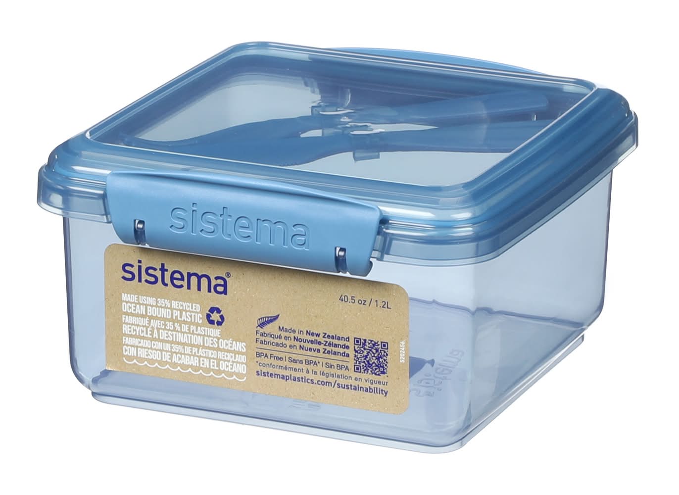 Sistema Ocean Bound Plastic Lunch Box Plus Cutlery 1.2L, Assorted