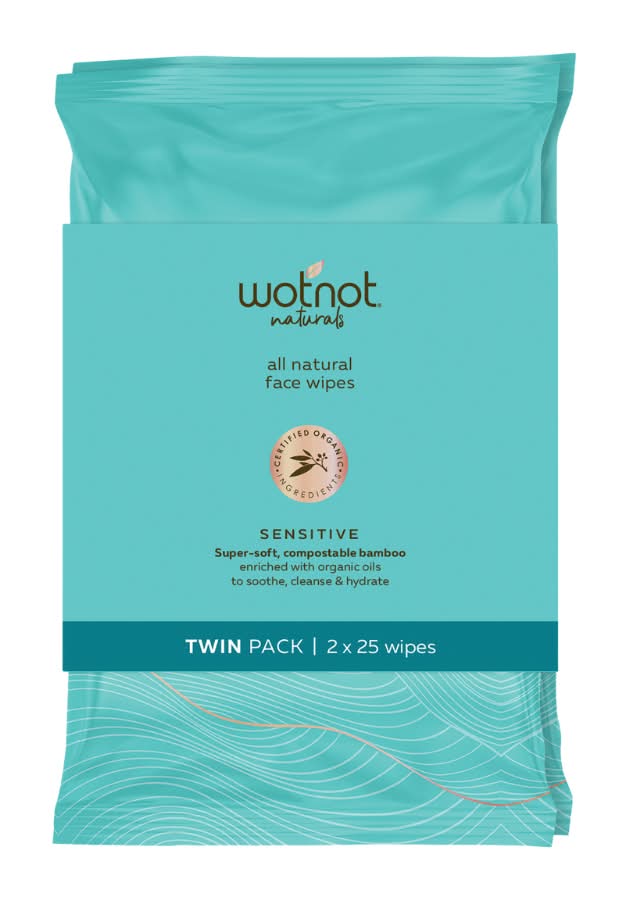 Wotnot Sensitive All Natural Face Wipes (2 x 25 pack)
