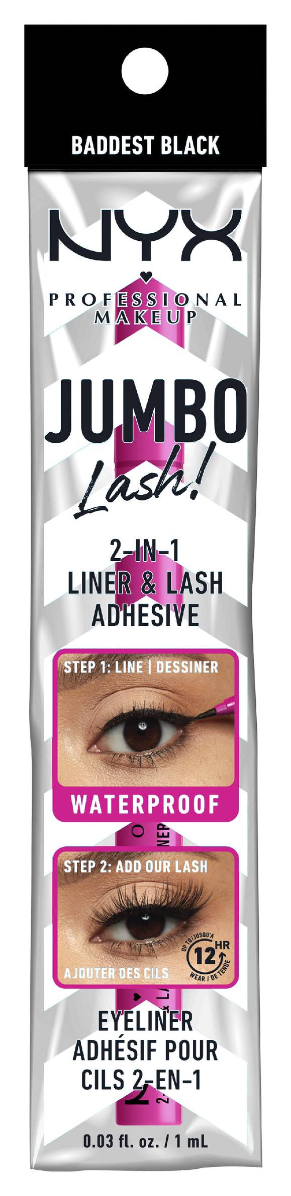 NYX Professional Makeup Jumbo Lash 2-in-1 Liner & Lash Adhesive, Baddest Black (1mL)