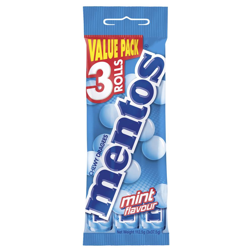 Mentos Chewy Dragees Candy Roll, Mint (112.5g, 3 pack)